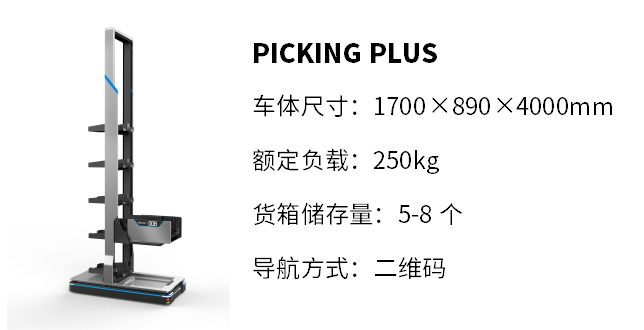 该解决方案由星空电竞多层料箱拣货机器人Picking Plus完成运作,PICKING Plus运输效率及拣选效率比人工快30%以上,可适用于4米以上高货架拣选,有效增加仓库容积30-40%以上,99.99%拣选正确率,确保仓储作业精准,效率均衡输出,可提升整体库内作业绩效40%以上,单车可连续作业8小时,实现仓库24小时不间断作业,提升全仓效率50%以上。