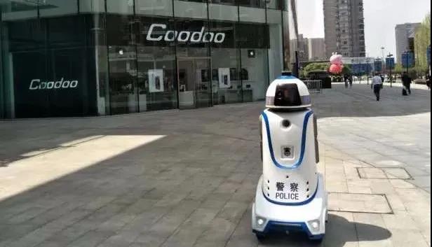 (在杭州城西银泰商场外巡逻的安防机器人)